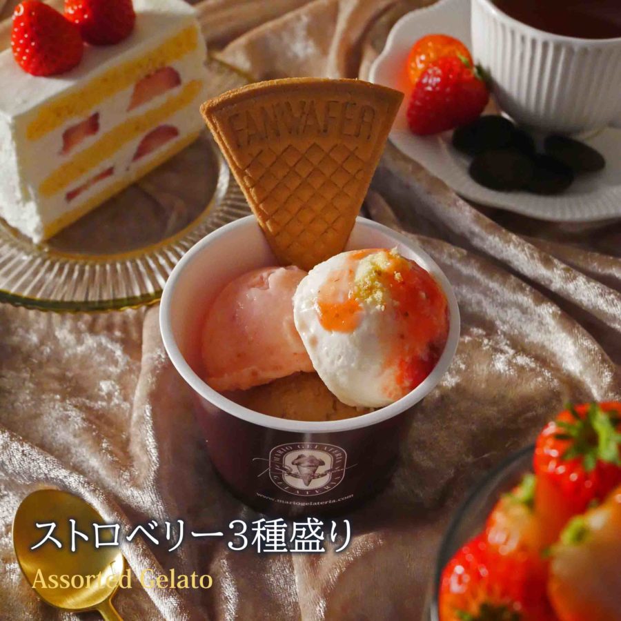 「ストロベリー3種盛り」を販売します。プレミアム マリオジェラテリア
